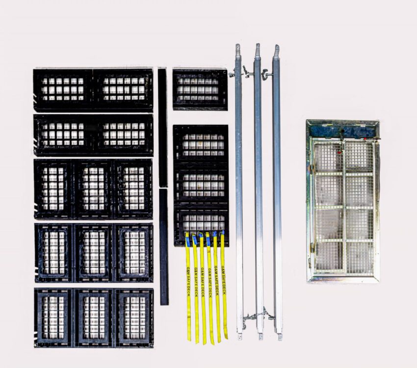 In one easy application, involving a simple component that can be quickly and easily pinned to either end of a leg tube, G&M Safe Deck can be made freestanding, meaning that there is no need for the supporting structure to contain the deck.